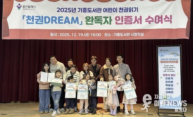 이런뉴스(e-runnews) 김삼성 기자 | 용인특례시 기흥도서관은 19일 기흥도서관 시청각실에서 ‘천권DREAM 완독자 인증서 수여식’을 개최했다고 22일 밝혔다.