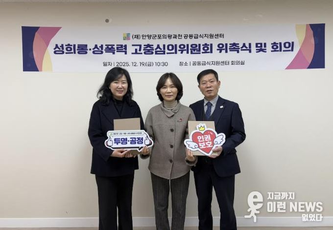 이런뉴스(e-runnews) 김삼성 기자 | (재)안양군포의왕과천 공동급식지원센터는 지난 19일 재단 내 성희롱성폭력 사건에 대한 공정하고 전문적인 처리체계를 구축하기 위해 ‘성희롱·성폭력 고충심의위원회’를 구성하고 위촉식을 개최했다고 22일 밝혔다.