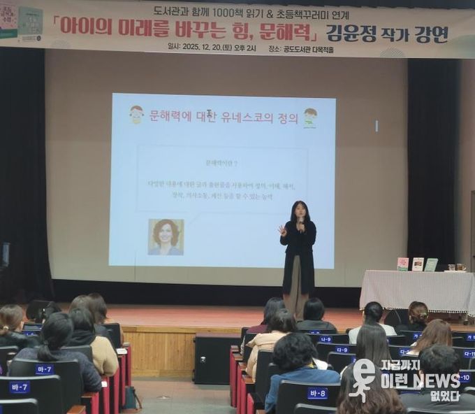 이런뉴스(e-runnews) 김삼성 기자 | 안성시 공도도서관은 지난 20일 오후 2시 ‘도서관과 함께 1000책 읽기’ 및 ‘초등 책꾸러미’참여자 부모와 문해력에 관심있는 시민을 대상으로 김윤정 작가 초청 강연 '아이의 미래를 바꾸는 힘, 문해력'을 개최했다.