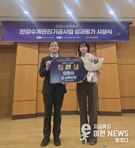 이런뉴스(e-runnews) 김삼성 기자 | 이천시는 한강수계관리위원회가 실시한 ‘2024 회계연도 한강수계관리기금 성과평가’에서 환경기초시설 운영 분야 장려상을 수상했다고 밝혔다. 이천시는 이번 평가에서 31개 관리청 가운데 3위에 올랐다.