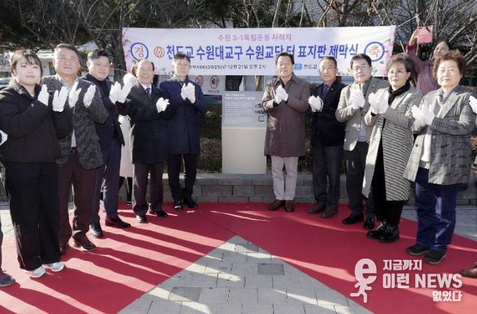 이날 제막식에는 이재준 시장, 천도교 수원대교구 안춘보 교구장과 교인 등이 참석했다.