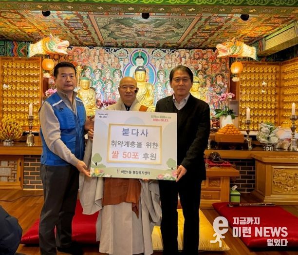 함기훈 동장은 “매년 꾸준히 나눔을 실천한 붇다사 덕분에 큰 힘이 됐다”며 “기부한 쌀은 어려운 가정에 정성껏 전달하겠다”고 전했다.