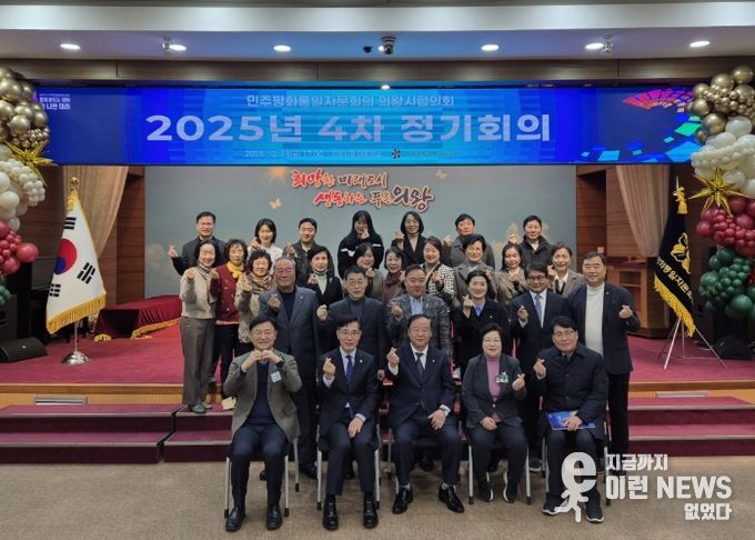 이런뉴스(e-runnews) 김삼성 기자 | 민주평화통일자문회의 의왕시협의회가 12월 19일 시청 대회의실에서 자문위원 등 45명이 참석한 가운데‘화해·협력의 남북관계 재정립을 위한 정책방향’을 주제로‘2025년 4차 정기회의’를 개최했다.