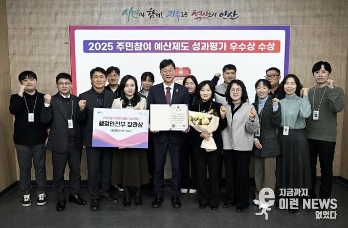 이런뉴스(e-runnews) 김삼성 기자 | 안산시는 행정안전부 주관 ‘2025년 주민참여예산 성과평가’에서 종합 부문 우수상을 수상, 주민참여예산 제도 운영 전반의 성과를 대외로부터 인정받았다고 23일 밝혔다.