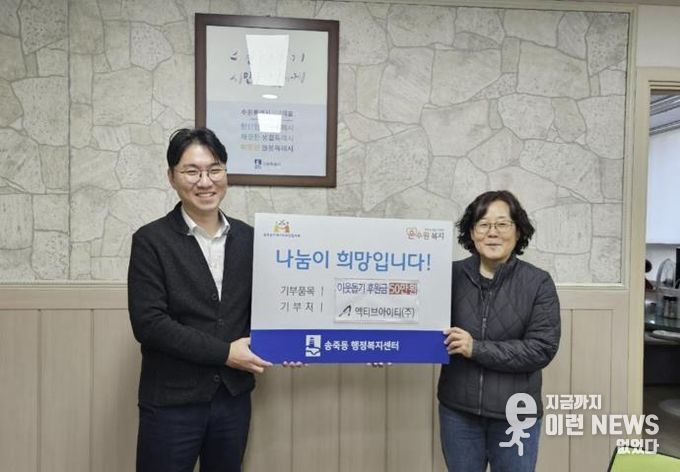 최선정 송죽동장은 “매년 잊지 않고 따뜻한 나눔을 실천해 주시는 ㈜엑티브아이티에 깊이 감사드린다”며 “기탁해 주신 후원금은 도움이 꼭 필요한 이웃들에게 소중히 전달하겠다”고 전했다.