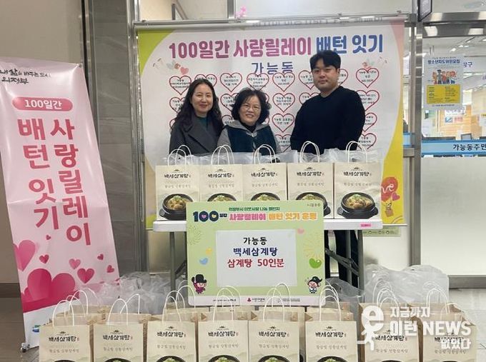 이런뉴스(e-runnews) 김삼성 기자 | 의정부시 가능동주민센터는 12월 22일 백세삼계탕이 ‘100일간 사랑릴레이 배턴 잇기’에 동참해 관내 노인들을 위해 삼계탕 50인분을 기탁했다고 밝혔다.