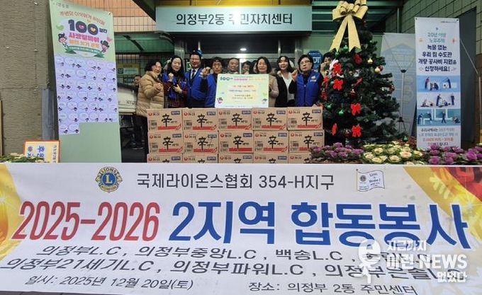 이런뉴스(e-runnews) 김삼성 기자 | 의정부시 의정부2동주민센터는 12월 20일 국제라이온스협회 354-H지구 제2지역이 ‘100일간 사랑릴레이 배턴 잇기’에 동참해 취약계층을 위한 라면 30상자를 기부했다고 밝혔다.