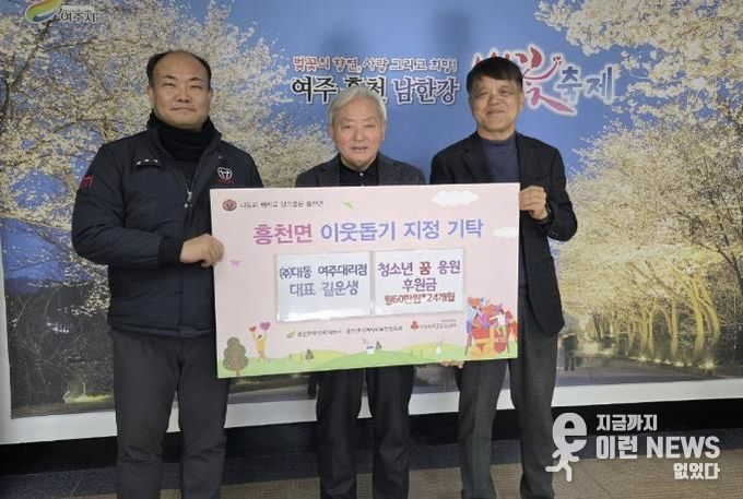 이런뉴스(e-runnews) 김삼성 기자 | (주)대동 여주대리점은 저소득 취약계층 청소년의 건강한 성장과 꿈을 응원하기 위해 매월 60만 원씩 24개월간 총 1,440만 원의 후원금을 흥천면 행정복지센터에 지정기탁 형태로 납부하기로 약속했다.