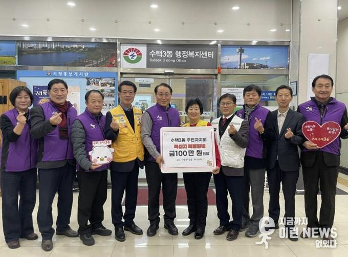 이영열 주민자치회장은 “이번 특별회비가 지역에서 도움이 필요한 이웃들에게 따뜻한 희망이 되길 바란다.”라고 말했다. 홍종민 수택3동장은 “따뜻한 사회 구현을 위해 나눔을 실천해 주신 수택3동 주민자치회에 감사드리며, 앞으로도 지속적인 나눔 문화 확산을 위해 행정복지센터에서도 적극 지원하겠다.”라고 밝혔다.