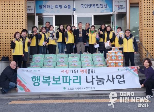 이런뉴스(e-runnews) 김삼성 기자 | 포천시 소흘읍 행정복지센터는 지난 22일 소흘읍지역사회보장협의체가 1인 가구 어르신 결연세대 등 저소득 38가구를 대상으로 ‘행복보따리 나눔사업’을 추진했다고 밝혔다.