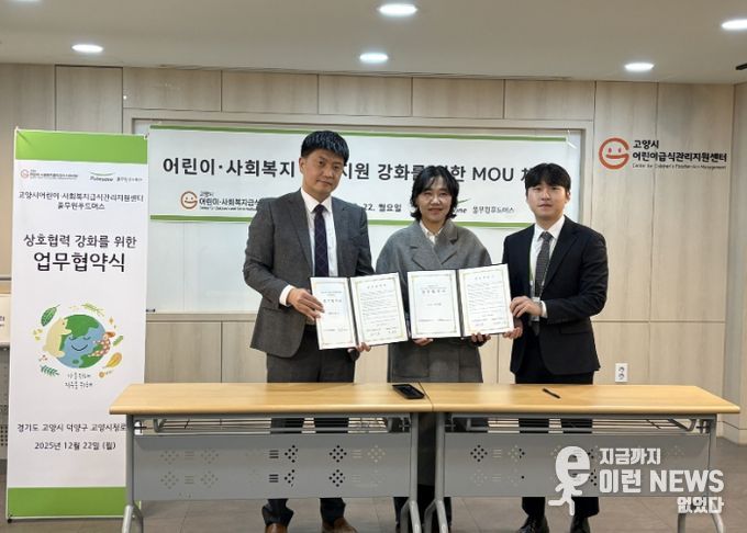 이런뉴스(e-runnews) 김삼성 기자 | 고양특례시에서 위탁 운영하고 있는 고양시 어린이·사회복지급식관리지원센터는 지난 22일 풀무원 푸드머스와 업무협약(MOU)을 체결하고, 고양시 관내 어린이·사회복지 급식소의 위생·안전 및 영양관리 수준 향상을 위해 상호 협력하기로 했다.