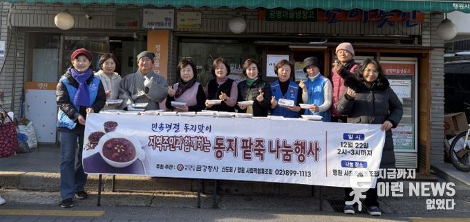 황용운 동장은 “이번 나눔행사를 위해 함께한 금강정사, 사회적협동조합 행원, 그리고 지역사회보장협의체 위원들에게 감사하다”며 “따뜻한 팥죽 한 그릇이 주민들에게 작은 위로가 됐길 바라며, 모두 건강하고 행복한 새해를 맞이하시길 기원한다”고 말했다.