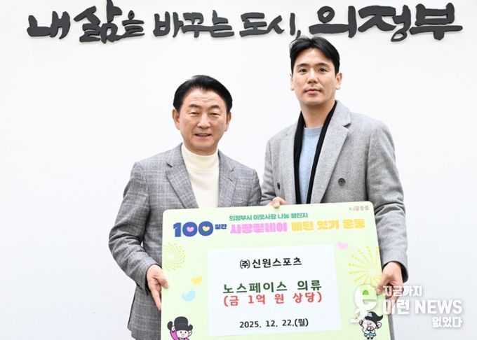 이런뉴스(e-runnews) 김삼성 기자 | 의정부시는 12월 22일 ㈜신원스포츠 노스페이스 양주점(LF스퀘어몰)과 포천송우점이 관내 아동복지시설에 아동용 의류 및 가방 등 1억 원 상당의 물품을 기부했다고 밝혔다.