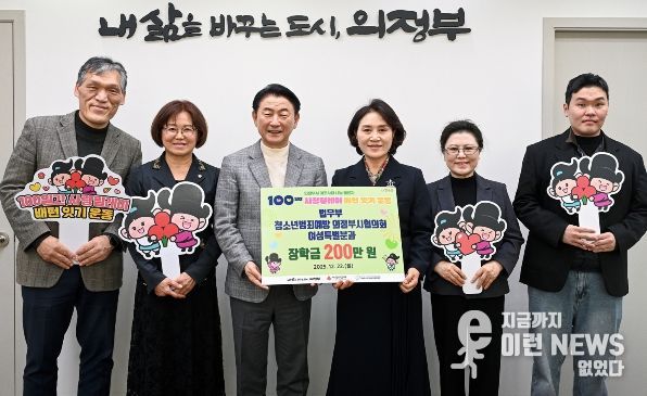 이런뉴스(e-runnews) 김삼성 기자 | 의정부시는 12월 22일 법무부 청소년범죄예방 의정부시협의회 여성특별분과가 자립준비청년의 안정적인 사회정착을 돕기 위해 200만 원의 후원금을 전달했다고 밝혔다.