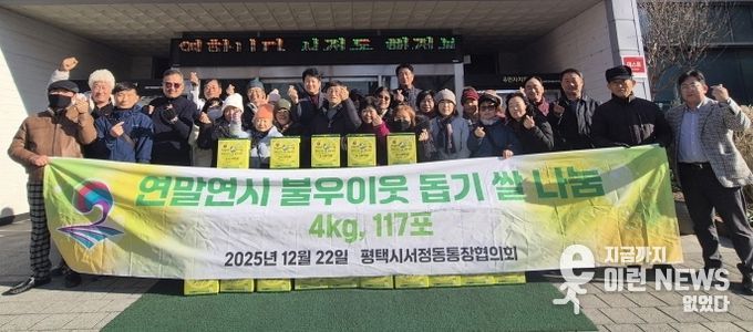 이런뉴스(e-runnews) 김삼성 기자 | 평택시 서정동 통장협의회는 지난 22일 연말연시를 맞아 어려운 이웃과 취약계층에 대한 사랑 나눔을 실천하고자 연말연시 불우이웃 돕기 쌀 나눔 행사를 진행했다.