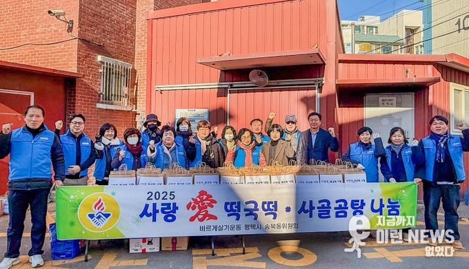 이런뉴스(e-runnews) 김삼성 기자 | 평택시 송북동 바르게살기위원회는 지난 22일 설 명절을 앞두고 송북동 내 취약계층과 경로당 어르신들에게 떡국떡과 사골곰탕 나눔 행사를 진행했다.