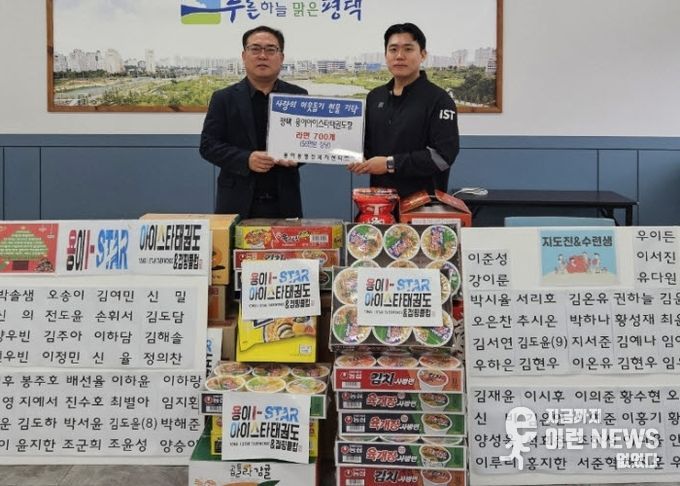 이런뉴스(e-runnews) 김삼성 기자 | 평택시 용이동에 있는 용이아이스타태권도장이 23일 연말을 맞아 관내 어려운 이웃들에게 전달해달라며 라면 700개를 용이동 행정복지센터에 기부했다.