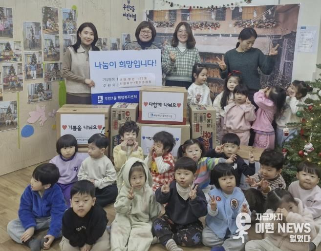 시립우만2동어린이집 관계자는 “작은 정성이지만 아이들과 함께 나눔을 실천할 수 있어 매우 뜻깊다”며 “앞으로도 지역사회에 보탬이 될 수 있는 다양한 나눔 활동을 지속적으로 이어가겠다”고 전했다.