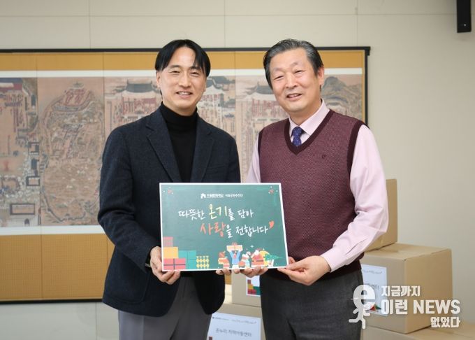 이런뉴스(e-runnews) 김삼성 기자 | 수원문화재단은 기부물품 증정식을 개최하고, 관내 지역아동센터 10곳에 책과 양말을 전달했다.