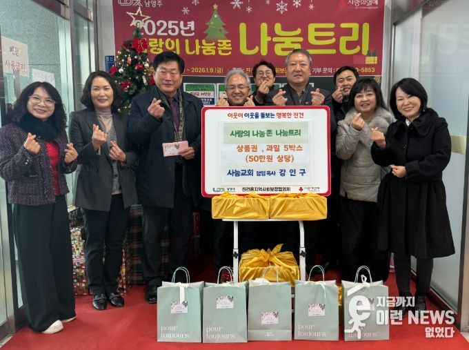 이런뉴스(e-runnews) 김삼성 기자 | 남양주시는 지난 23일 진건읍 사능교회가 진건퇴계원행정복지센터 1층 로비 나눔존에서 성탄절을 맞아 모자가정을 위한 후원물품을 전달했다고 밝혔다.