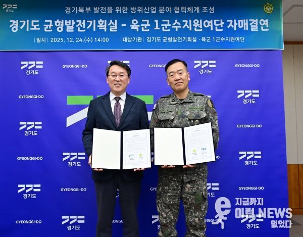 이런뉴스(e-runnews) 김삼성 기자 | 경기도와 육군 1군수지원여단이 자매결연을 맺고, 경기북부 발전을 위한 방위산업 분야의 지속가능한 상생 협력체계 구축에 나선다고 24일 밝혔다.