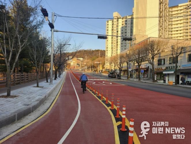또 광교산로 보행·자전거 이용 여건을 개선하기 위해 320m 길이의 자전거도로를 새로 조성했다. 보행자와 차량이 한 공간을 쓰던 구간에 자전거 전용 공간을 분리해 보행자와 자전거 이용자의 안전을 강화했다.