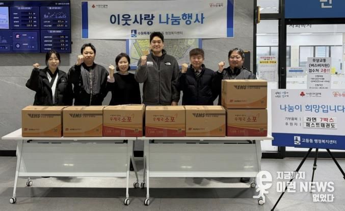 이런뉴스(e-runnews) 김삼성 기자 | 수원시 팔달구 고등동은 12월 24일, 관내 퍼스트 태권도장에서 연말을 맞아 어려운 이웃을 위해 라면을 기부했다고 밝혔다.