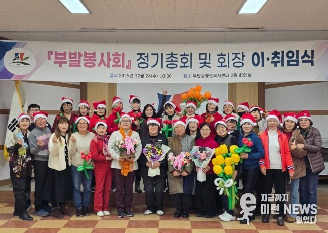 이런뉴스(e-runnews) 김삼성 기자 | 이천시 부발읍 부발봉사회는 12월 24일 부발읍 행정복지센터 2층 회의실에서 정기총회 및 회장 이·취임식을 개최했다고 밝혔다. 이날 행사에는 황규현 회장을 비롯한 부발봉사회 회원 27명이 참석한 가운데, 이·취임사와 축사 등 순으로 진행됐다.