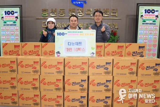 이런뉴스(e-runnews) 김삼성 기자 | 의정부시 흥선동행정복지센터는 12월 24일 다농마트가 ‘100일간 사랑릴레이 배턴 잇기’에 동참해 라면 50상자를 기탁했다고 밝혔다.
