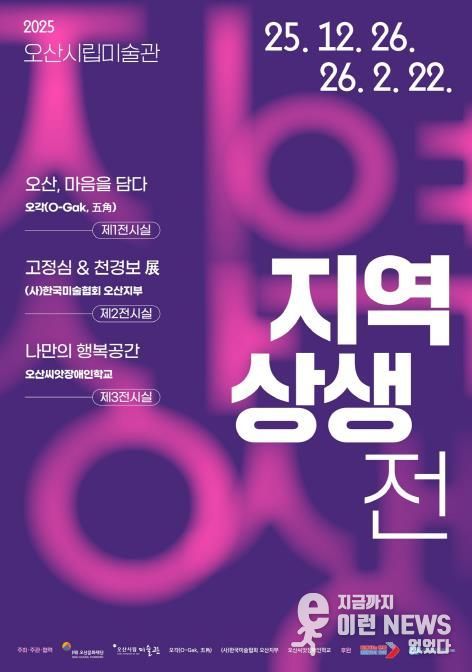 '2025 지역 상생전'은 2025년 12월 26일부터 2026년 2월 22일까지 오산시립미술관에서 진행되며, 매주 월요일과 1월 1일, 설날 당일은 휴관한다. 전시에 대한 자세한 내용은 오산문화재단 누리집을 통해 확인할 수 있다.