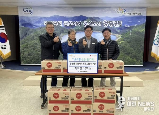 이런뉴스(e-runnews) 김삼성 기자 | 가평군 청평면 주민자치 프로그램 탁구반 회원들은 최근 청평면 행정복지센터를 방문해 소외된 이웃들이 따뜻한 겨울을 보내길 바라는 마음으로 즉석밥 10박스를 기탁했다.