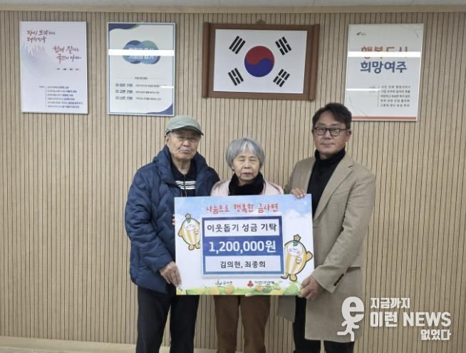 이런뉴스(e-runnews) 김삼성 기자 | 금사면 생활개선회 최종희 회장이 배우자와 함께 지난 24일 여주시 금사면행정복지센터를 방문하여 이웃돕기 성금 120만원을 기탁했다.
