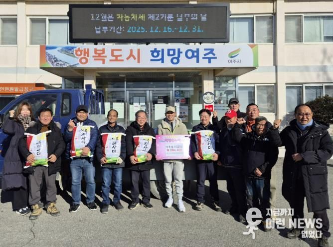 이런뉴스(e-runnews) 김삼성 기자 | 대신면 후계농업경영인회는 지난 12월 26일 지역 내 어려운 이웃을 돕기 위해 따뜻한 마음을 담아 여주쌀 10kg, 44포를 대신면 행정복지센터에 기탁하며 연말을 맞아 따뜻한 나눔의 정을 전하며 지역 사회에 훈훈한 감동을 전했다.