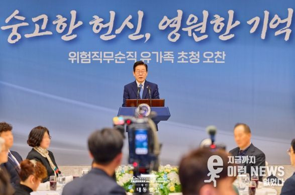 이런뉴스(e-runnews) 김삼성 기자 | 이재명 대통령은 26일 위험 직무를 수행하다 순직한 이들의 유가족을 만나 "국가와 공동체를 위한 희생에 합당한 대우로 응답하는 나라, 국민을 위한 헌신이 자긍심과 영예로 되돌아오는 나라를 꼭 만들겠다"고 약속했다.