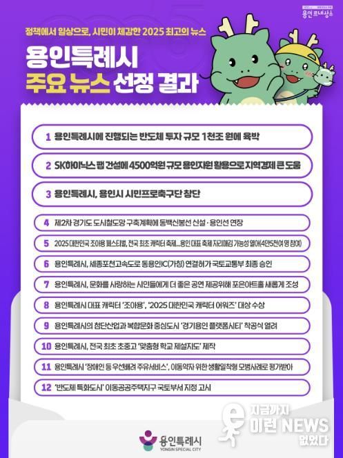 이런뉴스(e-runnews) 김삼성 기자 | 2025년 용인특례시를 빛낸 최고의 뉴스로 '반도체 투자규모 1000조 원에 육박'이 뽑혔다.