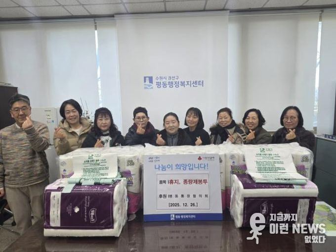 이런뉴스(e-runnews) 김삼성 기자 | 수원시 권선구 평동 통장협의회는 주민들과 함께 수거한 종이팩으로 교환받은 휴지와 종량제봉투를 전량 기부하며 따뜻한 나눔을 실천했다.