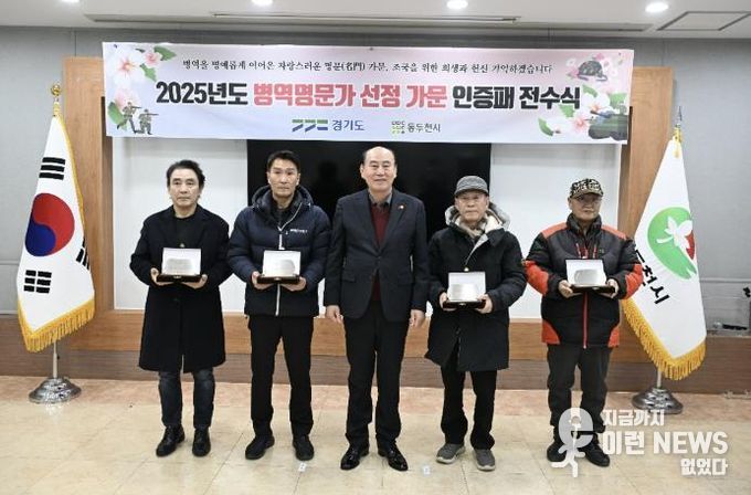 이런뉴스(e-runnews) 김삼성 기자 | 동두천시는 지난 12월 26일 시청에서 2025년도 병역명문가로 선정된 가문을 초청해 인증패 전수식을 개최했다.