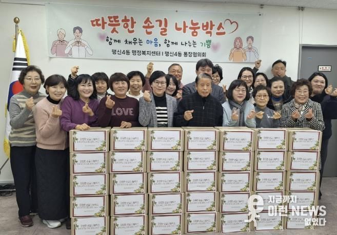 이런뉴스(e-runnews) 김삼성 기자 | 고양특례시 덕양구 행신4동은 지난 29일, 통장들이 매달 자발적으로 모은 기부금으로 마련한 ‘따뜻한 손길 나눔박스’를 독거어르신에게 전달했다고 밝혔다.