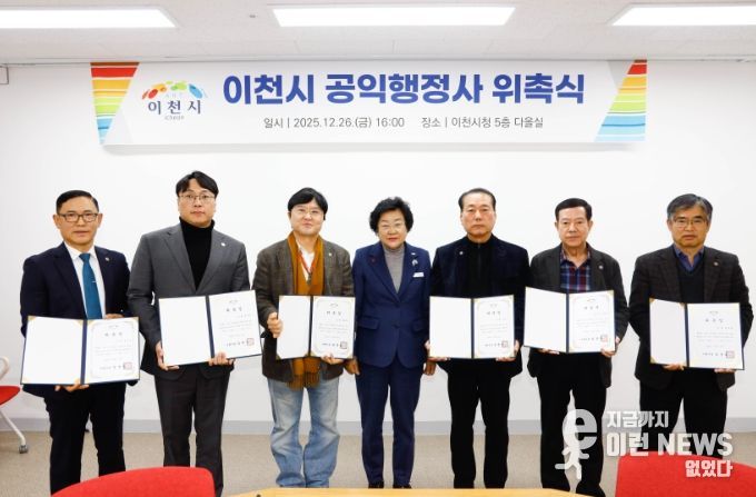 이런뉴스(e-runnews) 김삼성 기자 | 이천시는 복잡한 행정 절차로 어려움을 겪는 시민들을 돕기 위해 공익 행정사를 위촉하고 지난 26일, 이천시청 5층 다올실에서 ‘제1기 공익행정사 위촉식’을 개최했다.