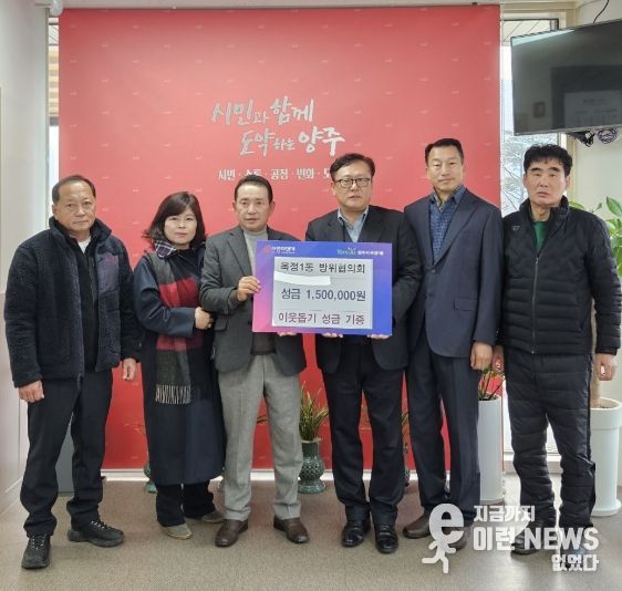 이런뉴스(e-runnews) 김삼성 기자 | 양주시 옥정1동 방위협의회가 29일 옥정1동 행정복지센터를 방문해 어려운 이웃을 돕는 데 써달라며 성금 150만 원을 기탁했다.