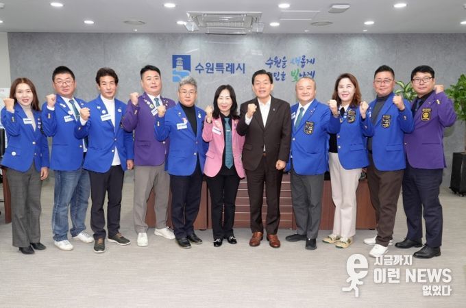 시장 집무실에서 열린 기부 물품 전달식에는 이재준 수원시장, 수원2지역 로타리클럽 임원이 참석했다.