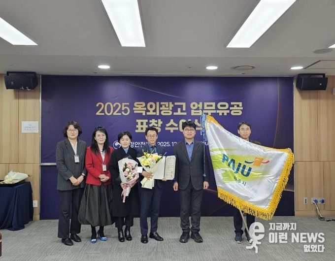 이런뉴스(e-runnews) 김삼성 기자 | 파주시는 행정안전부 주관 '2025년 옥외광고업무 유공’포상에서 국무총리 기관 표창을 수상했다고 전했다.