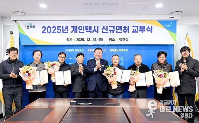 이런뉴스(e-runnews) 김삼성 기자 | 파주시는 지난 29일 '2025년도 개인택시 신규면허 교부식’을 개최했다고 밝혔다.