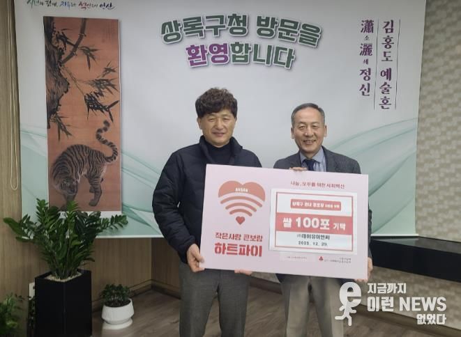 이런뉴스(e-runnews) 김삼성 기자 | 안산시 상록구는 지난 29일 ㈜제이유이엔씨로부터 관내 경로당에 전달할 쌀 100포를 기탁받았다고 30일 밝혔다.