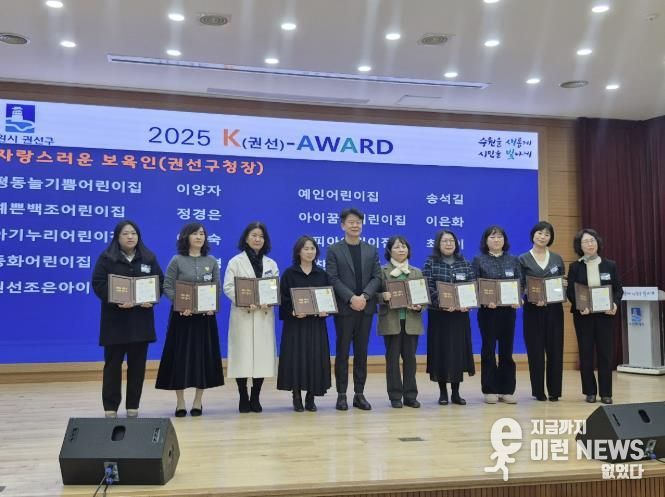 이런뉴스(e-runnews) 김삼성 기자 | 권선구는 지난 29일, 어려운 여건 속에서도 헌신적으로 봉사해 온 어린이집보육교직원의 사기 진작을 위해 ‘자랑스러운 보육인’ 10명을 선정하여 권선구청장 표창을 수여했다.