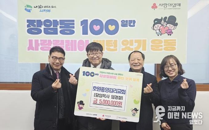 이런뉴스(e-runnews) 김삼성 기자 | 의정부시 장암동주민센터는 12월 29일 호원중앙감리교회가 지역 내 어려운 이웃을 돕기 위해 성금 500만 원을 기탁했다고 밝혔다.