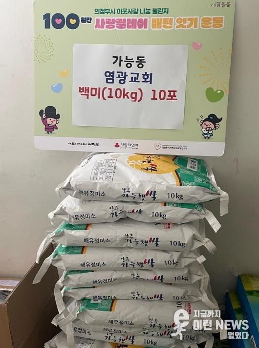 이런뉴스(e-runnews) 김삼성 기자 | 의정부시 가능동주민센터는 12월 26일 의정부 염광교회가 연말을 맞아 백미 10포(10kg 단위)를 기탁하며 ‘100일간 사랑릴레이 배턴 잇기’에 동참했다고 밝혔다.