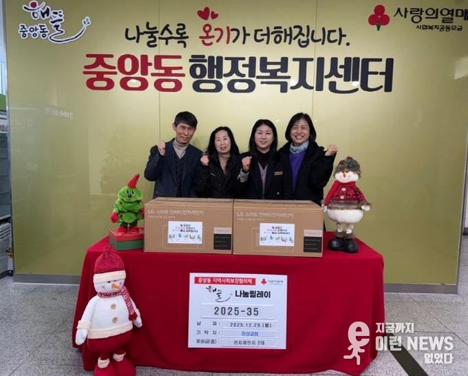 백경희 중앙동장은 “어르신들의 생활을 세심하게 살펴주신 진성교회의 따뜻한 나눔에 깊이 감사드린다”며 “이번 기탁은 새로운 공간에서 시작하는 경로당 어르신들께 큰 힘과 응원이 될 것”이라고 말했다.