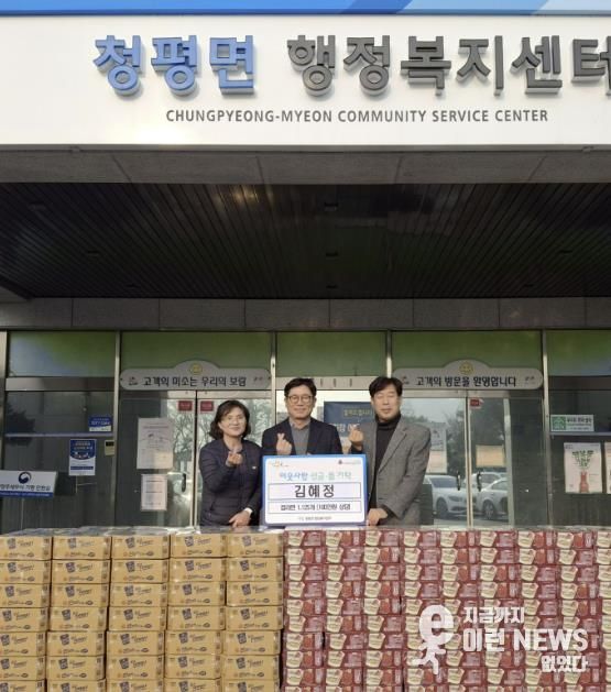 이에, 박성규 청평면장은 “어려운 시기에도 이웃을 먼저 생각하며 나눔을 실천해 주셔서 감사드린다”며 “기탁해 주신 물품은 도움이 필요한 이웃들에게 정성껏 전달해 따뜻한 마음이 잘 전해질 수 있도록 하겠다”고 전했다.