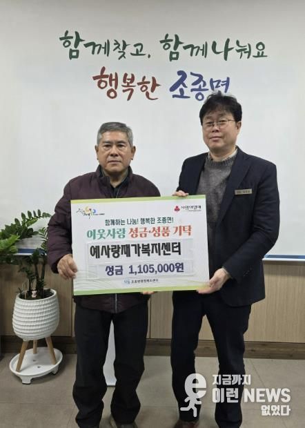 임진섭 조종면장은 “지역 복지 현장에서 묵묵히 헌신해 온 예사랑재가복지센터가 연말 나눔에도 앞장서 주셔서 감사드린다”며 “전달된 성금은 도움이 절실한 가구에 소중히 전달해 실질적인 지원이 이루어질 수 있도록 하겠다”고 전했다.